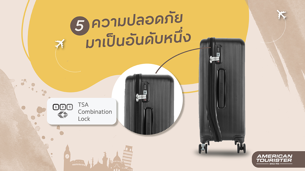 เดินทางไกลข้ามทวีป แวะพักต่อไฟลท์อะไรต่อมิอะไรมากมาย สิ่งที่ควรจำขึ้นใจในการเลือกกระเป๋าเดินทางคือระบบล็อคที่ได้มาตรฐาน Maxivo มีระบบล็อคแบบ Recessed 008 TSA Combi Lock ล็อคเข้ารหัสแบบฝังหัวซิป ป้องกันการกระแทก รวมถึงมี DuosafTM Security Zipper ระบบความปลอดภัยซิปนิรภัย 2 ชั้น ป้องกันโจรขโมยได้เซฟสุดๆ ไม่ว่าจะต่อเครื่องกี่ต่อ ไฟลท์ยาวกี่ชั่วโมง วางใจได้ว่าไม่ว่าใครก็ไม่สามารถเปิดกระเป๋าเดินทางของคุณได้แน่นอน