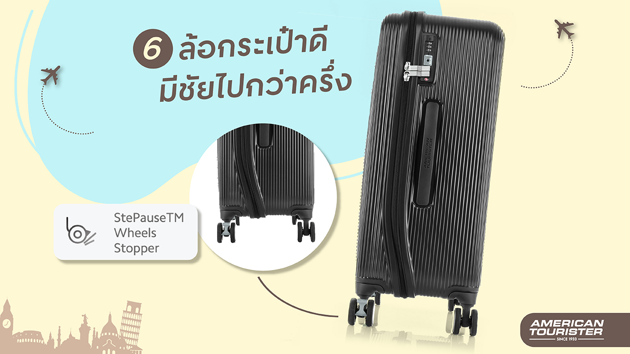 แค่นึกถึงว่าจะต้องลากกระเป๋าใบใหญ่เดินรอบสนามบินก็เหนื่อยแล้ว กระเป๋าเดินทางแบบ 2 ล้อรุ่นเก่าลืมไปได้เลย จุดนี้ต้องใช้กระเป๋าเดินทาง 4 ล้อเท่านั้น ความดีงามอีกอย่างของ Maxivo คือล้อ 4 ล้อที่ลื่นไหล ให้เข็นได้อย่างสบายใจไม่ต้องออกแรงมาก และเมื่อไหร่ที่กระเป๋าเดินทางต้องอยู่กับที่ Maxivo ยังมีระบบ StePauseTM Wheel Stopper ช่วยห้ามล้อทั้ง 4 ให้อยู่นิ่ง ไม่ไหลไปไหนไกล